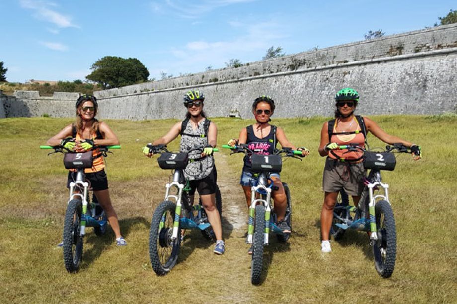 Découverte de l’île de Ré en trottinettes tout terrain à assistance électrique, 100% éco responsable. Balades « découverte » du patrimoine rhétais et de la nature, ou balades plus sportives selon vos envies !